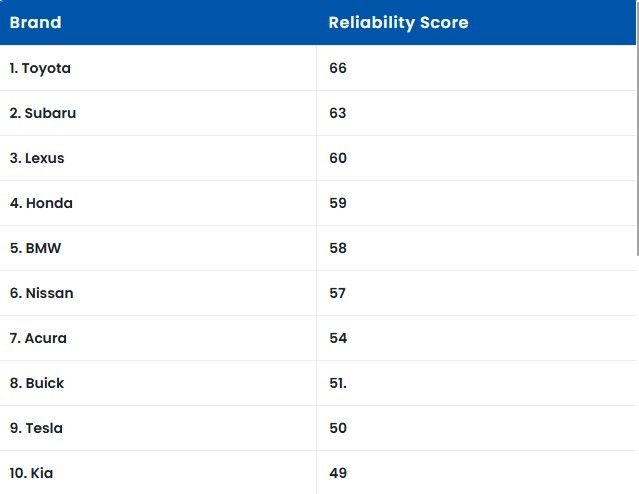 Bazuar në reagimet e gjera të konsumatorëve dhe të dhënat e prodhuesve të mbledhura nga Consumer Reports, Lexus, Subaru dhe Toyota zënë vendet e para në renditjen e përgjithshme të besueshmërisë.