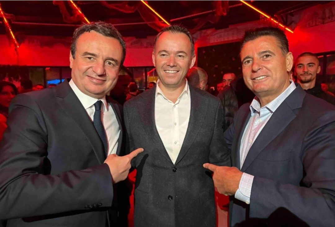Më pas, ai e këndon kryetarin e Mitrovicës, Faton Peci dhe kandidatit të VV-së për deputet, Agim Bahtiri.
