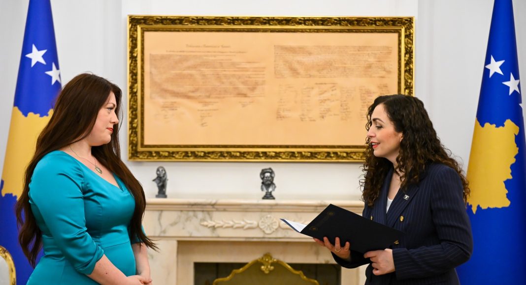 Gjatë ceremonisë, Osmani vlerësoi angazhimin e deputetes Kearns në rritjen e vetëdijes për sfidat dhe rreziqet me të cilat përballet Kosova dhe Ballkani Perëndimor.