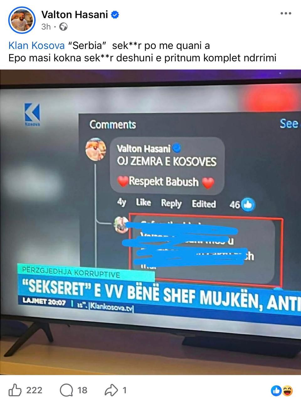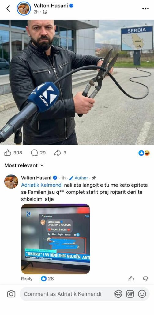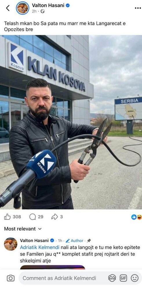 Së fundi, një nga këto postime ia ka drejtuar mediumit më të madh në vend, Klan Kosova. Për ta bërë më të besueshëm pretendimin e tij, ai ka përdorur manipulim fotografik, duke e shoqëruar atë edhe me gjuhë fyese.