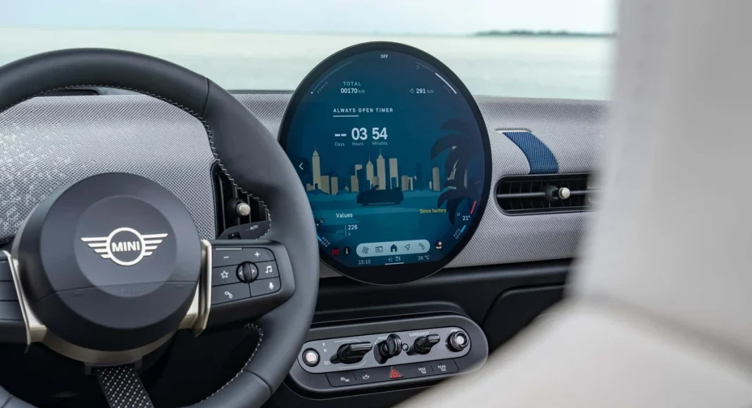 Në qendër të identitetit të brendësisë së Mini-t është ekrani karakteristik i rrumbullakët me prekje.