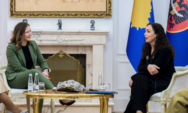 “Kënaqësi të takoj Presidenten Vjosa Osmani në Kosovë. Diskutuam rëndësinë e stabilitetit, qeverisjes së mirë dhe bashkëpunimit rajonal. Të gjitha janë thelbësore për të ardhmen e Kosovës në Evropë”, ka shkruar ajo.