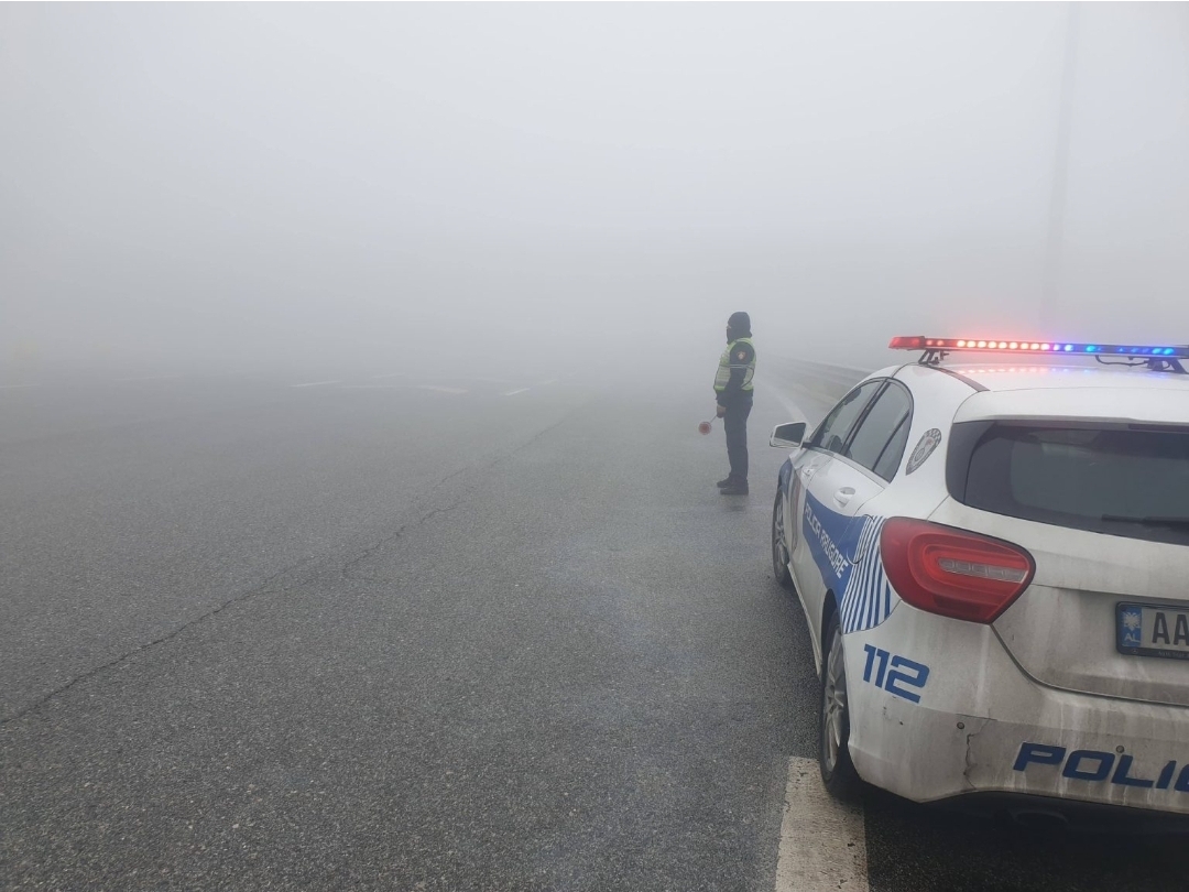 Policia Shqiptare ka apeluar për më shumë kujdes nga drejtuesit e automjeteve që qarkullojnë në Rrugën e Kombit, konkretisht në segmentin Tuneli i Kalimashit–Morinë, për shkak të prezencës së mjegullës dhe shikueshmërisë së reduktuar.