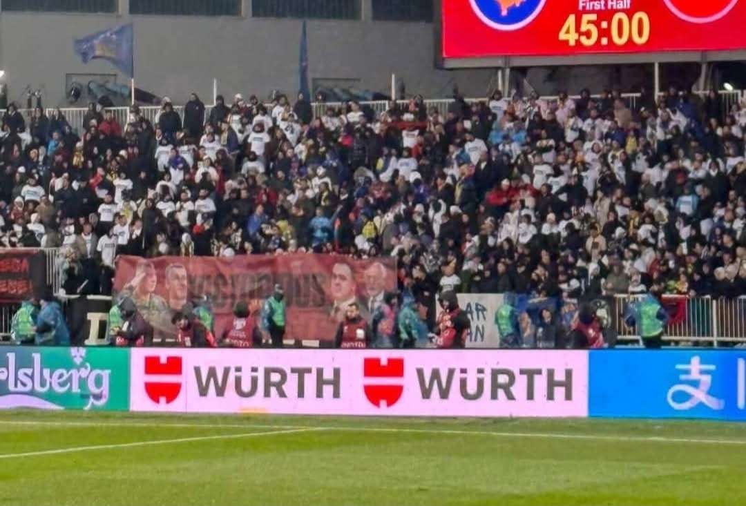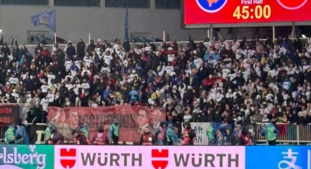 Ky baner qëndroi i hapur gjatë ndeshjes dhe u shoqërua me brohoritje nga tifozët, duke krijuar një moment emocional dhe simbolik në tribuna.
