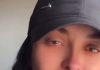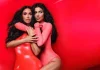 Supermodelja britanike veshi një bluzë rozë dhe të zezë me mëngë të shkurtra të strukturuara, të kombinuar me një fund të shkurtër elegant të zi.