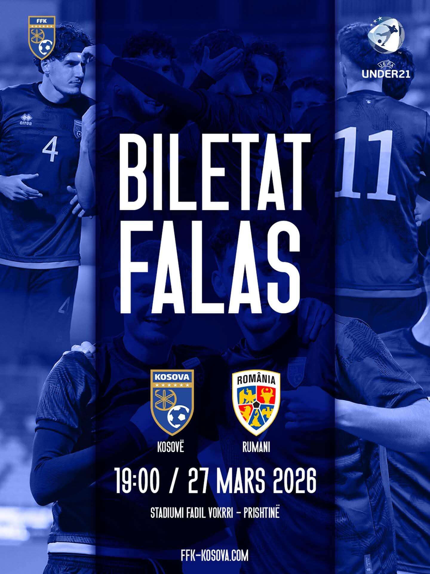 Federata e Futbollit të Kosovës, ka njoftuar se për ndeshjen mes Kosovës U21 dhe Rumanisë U21, biletat do të jenë falas.