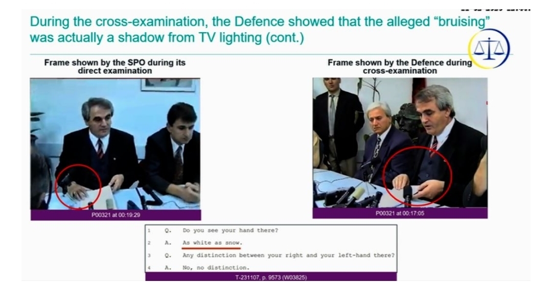 Megjithatë, avokati ka shfaqur provat se për mavijosjen që Prokuroria ka pretenduar se Dodaj e pësoi nga ushtarë të UÇK-së, ishte thjeshtë hije e pajisjeve në dhomën ku po mbahej një takim