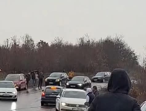 Në këtë segment të rrugës është shkaktuar kaos nga veturat e shumta të cilat kanë mbetur në mes të rrugës dhe disa prej tyre anash.