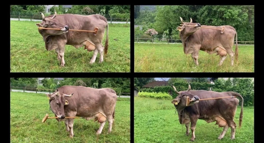 Veronika, një lopë zvicerane ngjyrë kafe nga fshati austriak i Karinthias, i tronditi studiuesit me rastin e parë të dokumentuar të një lope që mësoi se si të kruante veten me një shkop.