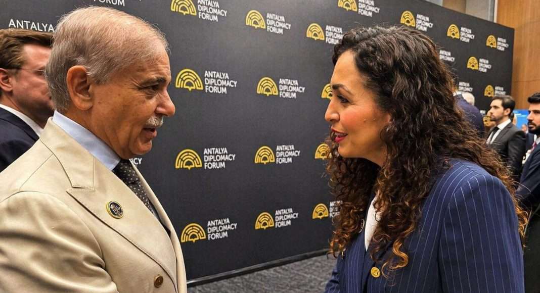 Ish-presidentja Vjosa Osmani, në kuadër të “Antalya Diplomacy Forum”, është takuar me kryeministrin e Pakistanit, Shehbaz Sharif.