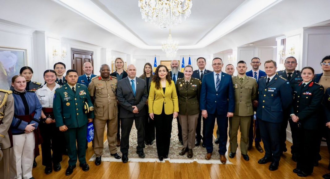 Presidentja e Republikës së Kosovës, Vjosa Osmani ka pritur sot gjeneralë, kolonelë e oficerë tjerë të lartë nga 16 shtete dhe mbi 30 akademi ushtarake nga Evropa, Amerika e Veriut, Azia, Afrika dhe më gjerë.