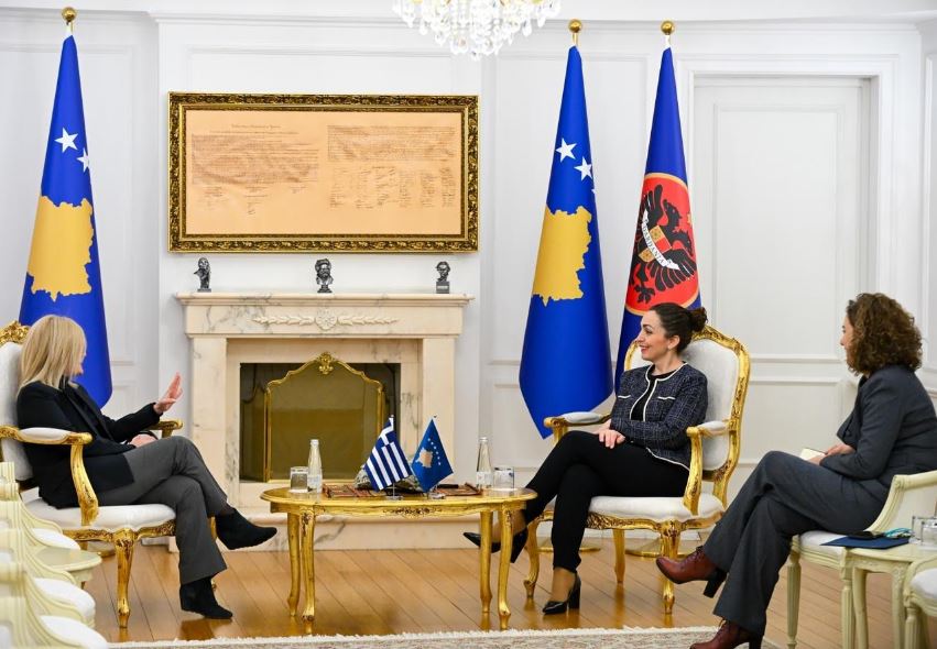 Presidentja e Republikës së Kosovës, Vjosa Osmani, ka pritur sot në takim Shefen e Zyrës Ndërlidhëse të Greqisë Heleni Vakali, me të cilën diskutoi për zhvillimet e fundit politike dhe institucionale në Kosovë.