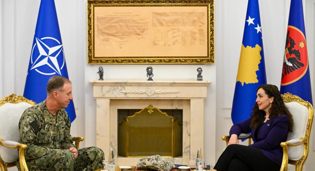 Presidentja e Republikës së Kosovës, Vjosa Osmani, priti sot në takim Komandantin e Komandës së Forcave të Përbashkëta e NATO-s në Napoli, Admiralin George M. Wikoff, me rastin e marrjes së detyrës së tij në krye të një prej komandave më të rëndësishme strategjike të Aleancës Veriatlantike.