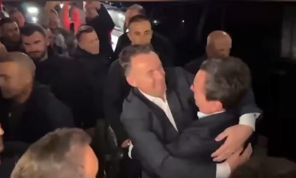 Pamje nga Mitrovica, Kurti e Peci gati sa nuk lëndohen duke u përqafuar ashpër pas fitores