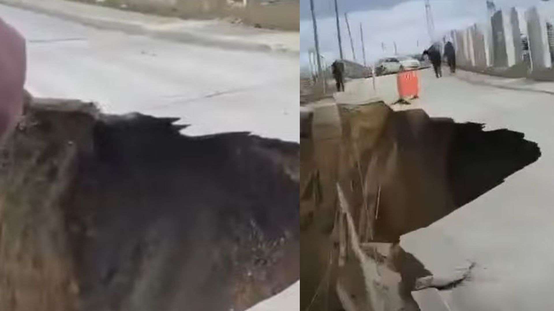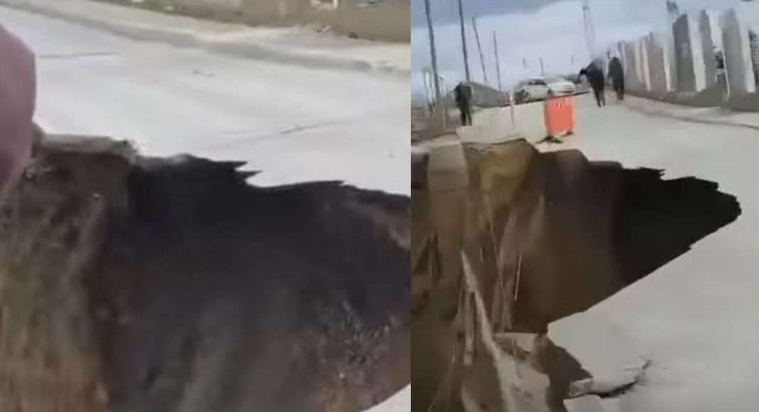 Sipas pamjeve shihet një gropë gjigante që është formuar në këtë rrugë duke shembur rrugën e asfaltuar.