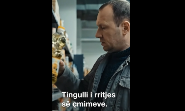 Në video shfaqet një burrë teksa kthen një produkt si pasojë e shtrenjtimit të cmimeve, ndërsa mesazhi shoqërues thotë: “Tingulli i rritjes së çmimeve. Keq, Albin!”.