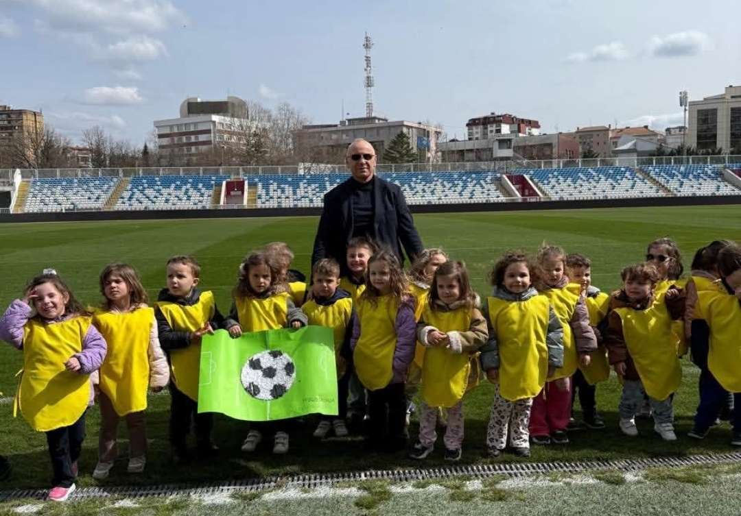Presidenti i Federata e Futbollit e Kosovës, Agim Ademi, ka pritur sot në stadiumin Stadiumi Fadil Vokrri fëmijët e çerdhes “Buzëqeshja” nga Prishtina.
