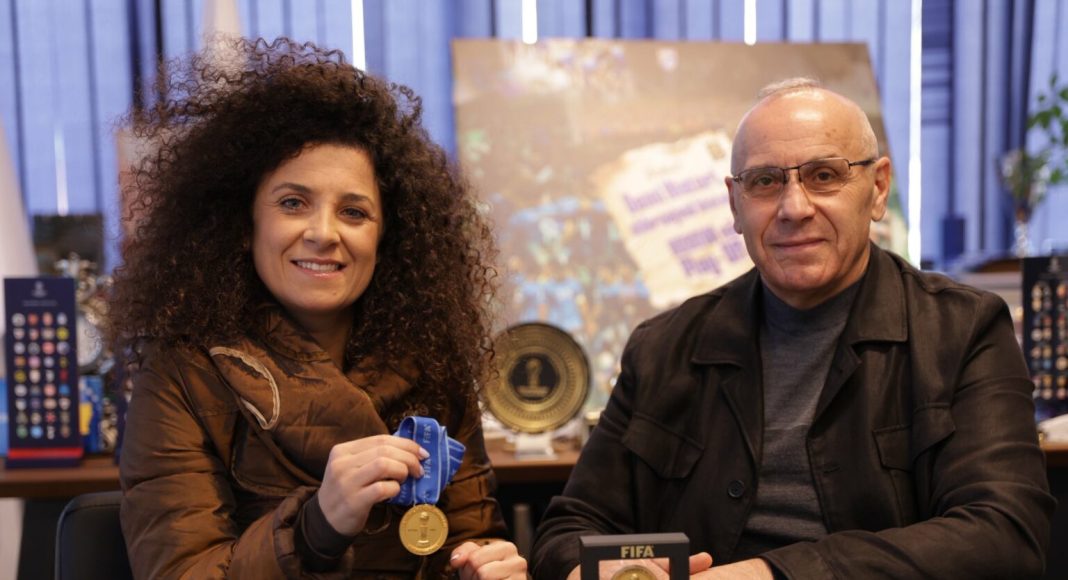 Presidenti i FFK-së, Agim Ademi, ka pritur në takim gjyqtaren Florentina Kallaba, e cila ishte pjesë e ekipit të gjyqtareve në finalen e parë historike të Kupës së Botës në futsall, të mbajtur në Filipine.