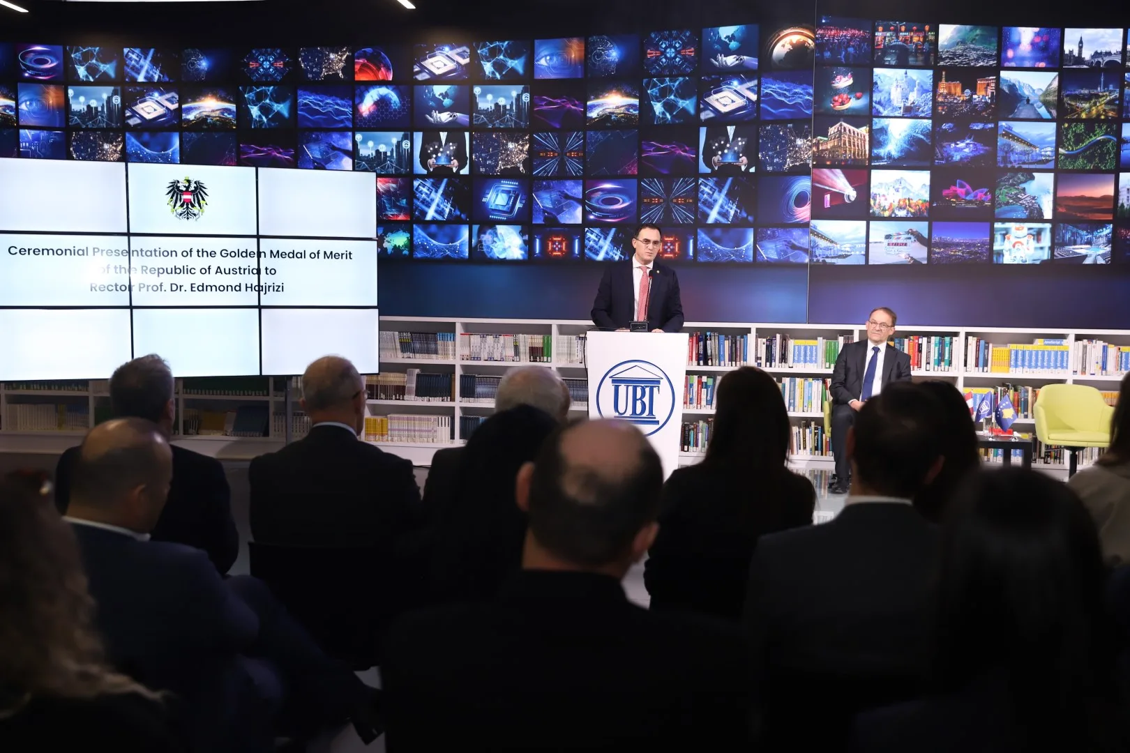Dekorata e lartë iu dorëzua Rektorit Hajrizi, në një ceremoni solemne organizuar sot në Parkun Inovativ të UBT-së, nga Ambasadori i Austrisë në Kosovë, z. Georg Schnetzer.
