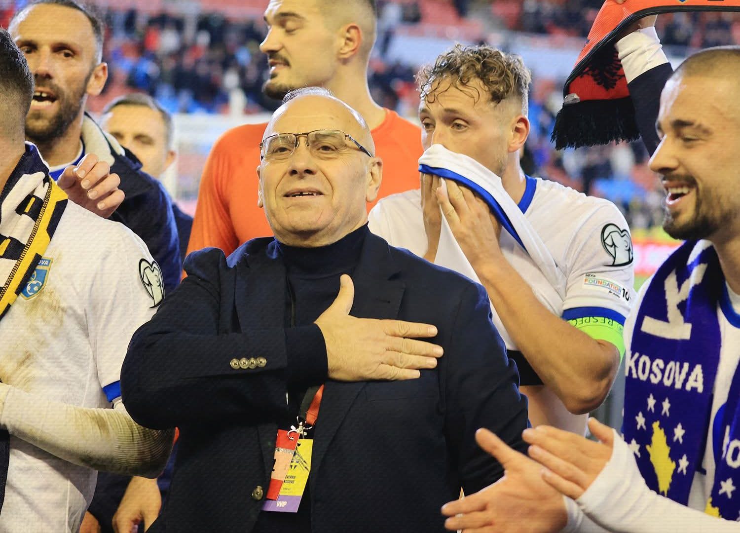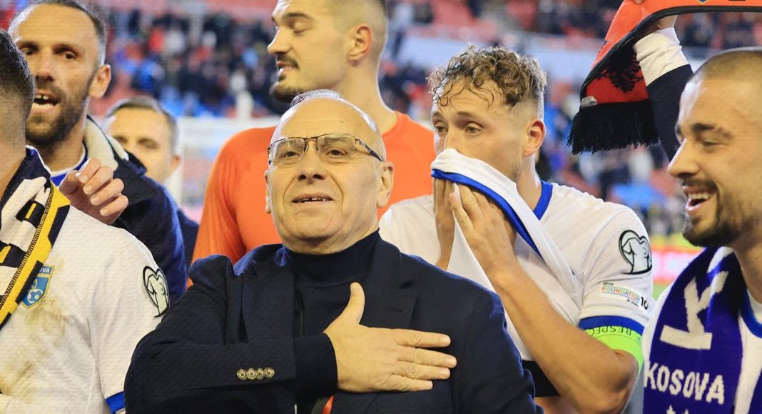 Presidenti i Federatës së Futbollit të Kosovës (FFK), Agim Ademi i është gëzuar fitores së Kosovës naj Suedisë.