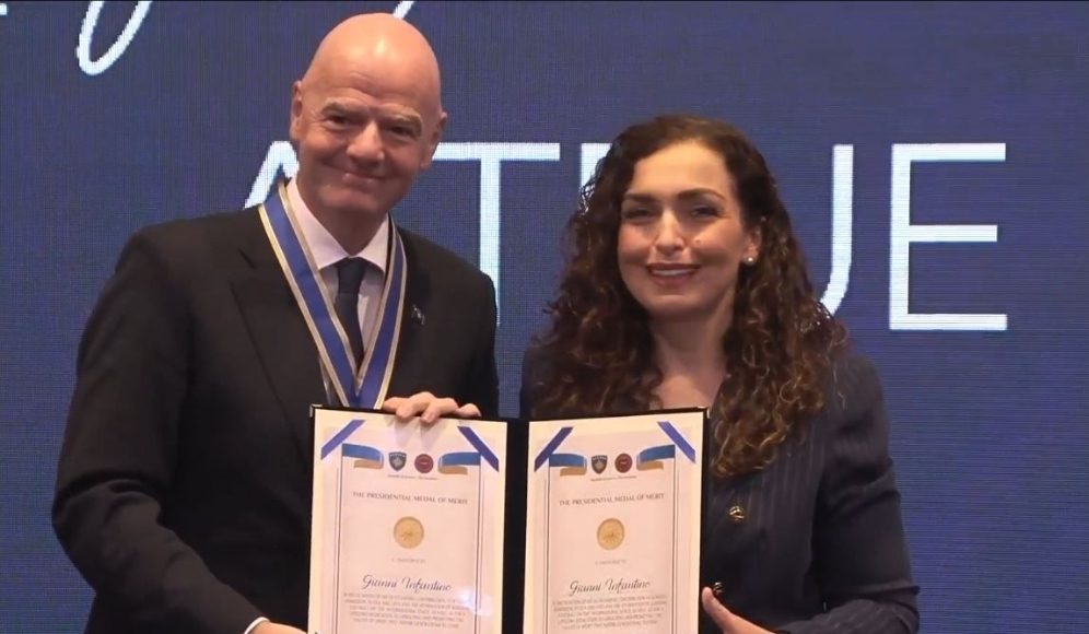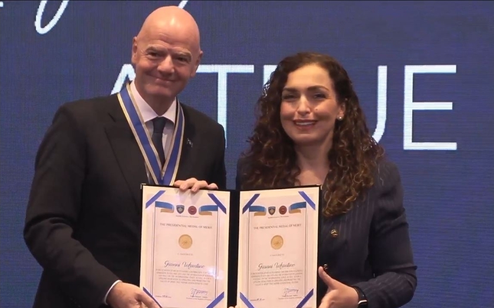 Presidenti i FIFA-s, Gianni Infantino është dekorurar nga presidentja e vendit, Vjosa Osmani.