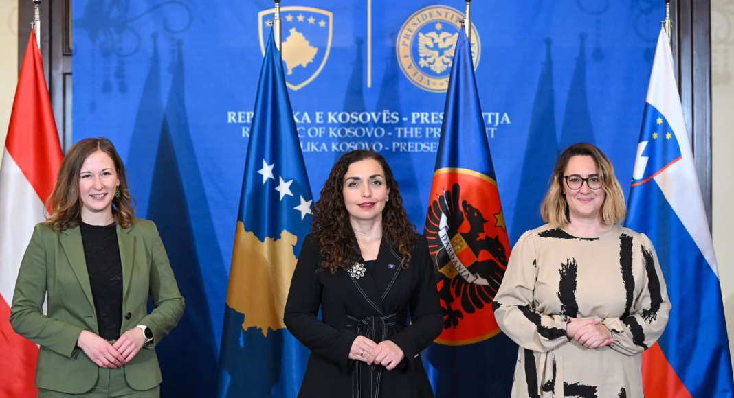 Presidentja e Republikës së Kosovës, Vjosa Osmani, gjatë një takimi me Ministren Federale të Austrisë për Evropë, Integrim dhe Familje, Claudia Plakolm, dhe Sekretaren e Shtetit të Sllovenisë për Çështje Evropiane, Neva Grašič, ka kërkuar përkrahjen e këtyre dy vendeve për heqjen e masave të Bashkimit Evropian ndaj Kosovës, të cilat i ka cilësuar si “të pajustifikuara në raport me arritjet e vendit”.