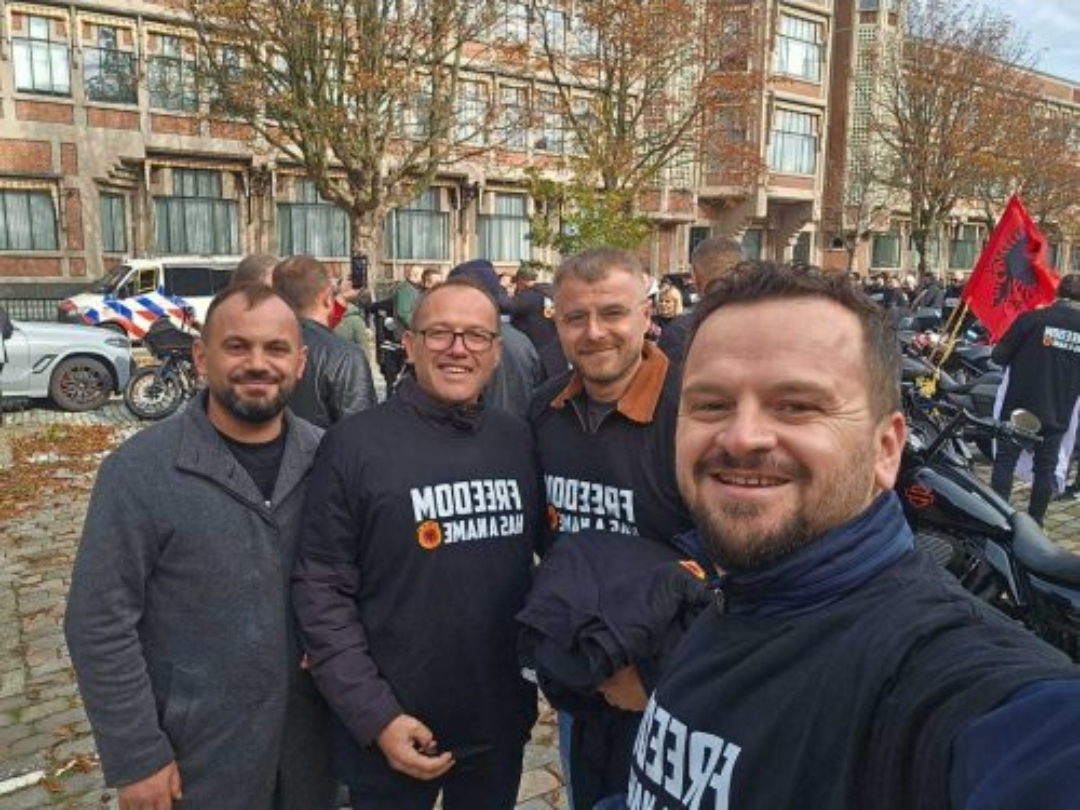 Krasniqi postoi fotografi me motoristët, ku i pranishëm ishte edhe organizatori i turit protestues, Ismail Tasholli.