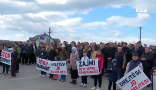 Banorët e fshatit Zajm, me pankarta në duar, kanë dalë në protestë për të kërkuar zgjidhje për çështjen e pronave të tyre.