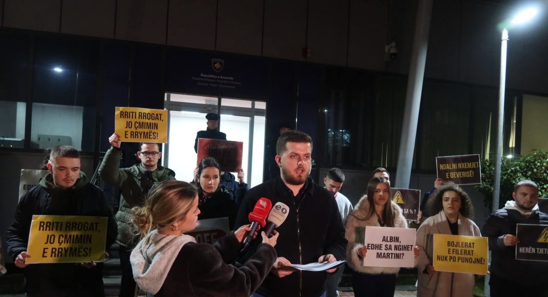 Anëtarë të Rinisë Demokratike të Kosovës kanë mbajtur sonte një aksion simbolik para Qeverisë së Kosovës, në shenjë proteste kundër mungesës së energjisë elektrike dhe paralajmërimit për rritjen e radhës së çmimit të saj.