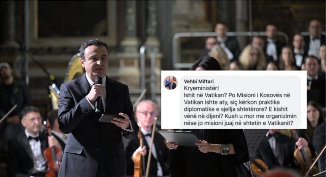 Vehbi Miftari, Shef i Misionit të Posaçëm të Republikës së Kosovës në Selinë e Shenjtë në Vatikan, i ka reaguar publikisht kryeministrit në detyrë, Albin Kurti pas pjesëmarrjes së këtij të fundit në një koncert të Korit të Operës së Kosovës në Bazilikën Santa Maria in Aracoeli.