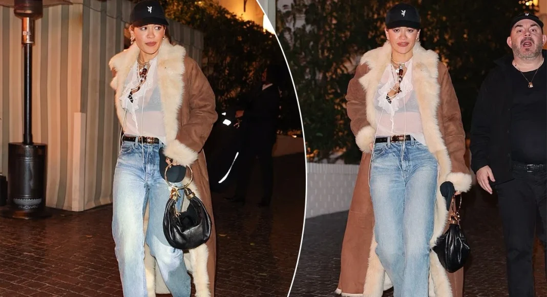 Rita dukej mahnitëse teksa ishte mbështjellë me një pallto të gjatë prej lëkure kamoshi ngjyrë kafe, e zbukuruar me jakë dhe detaje dramatike prej gëzofi të bardhë. Autorja e hitit “Body On Me” e kompletoi pamjen me një çantë të zezë lëkure, me dorezë të madhe prej ari, ndërsa për t’i dhënë një ton më casual, kishte vendosur edhe një kapele sportive.