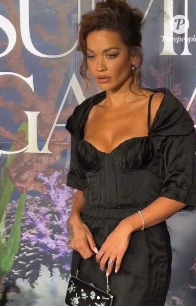 Rita shkëlqeu e veshur me një fustan të zi elegant, me prerje deri poshtë gjurit dhe dekolte të theksuar, që i vinte në pah linjat trupore, shkruan DailyMail.