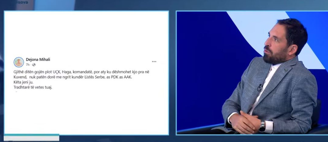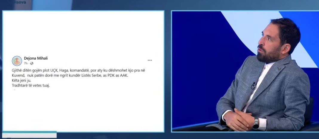 Analisti politik, Azdren Shala, e ka komentuar statusin e Dejona Mihalit të VV-së e cila tha se në seancën e sotme konstituive “nuk patën dorë me ngrit kundër Listës Serbe as PDK, as AAK. Tradhtarë të vetes tuaj”.
