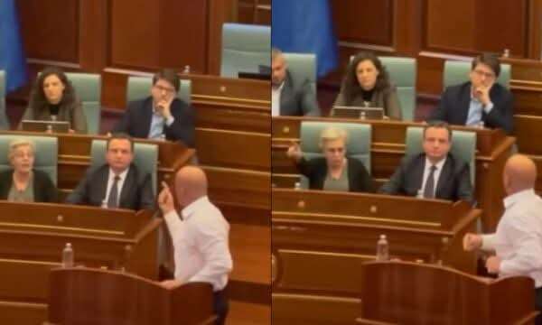 Haradinajt që po thoshte se Kurti “po mashtron” dhe “po rren”, Gërvalla i reagoi ashpër nga ulësja e saj në Kuvend, duke ia drejtuar edhe gishtin nga ulësja e tij e deputetit.