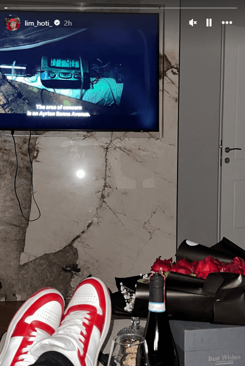 Limi në anën tjetër ka postuar në InstaStory një buqetë me trëndafila të kuq.
