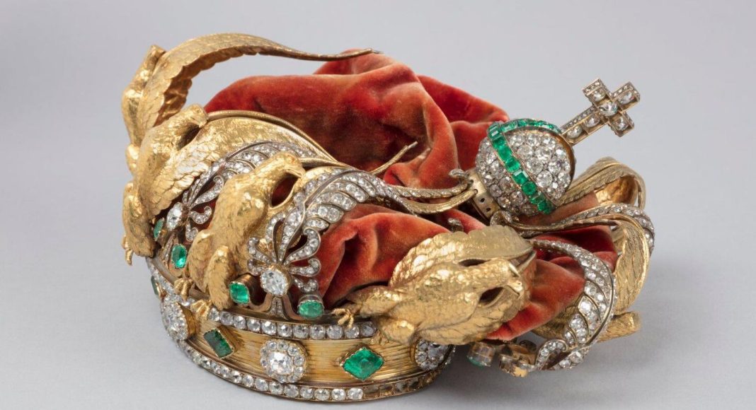 Kurorës i mungon një nga tetë shqiponjat e arta që e zbukuronin, por ruan 56 smeraldet e saj dhe të gjitha, përveç 10, nga 1,354 diamantet e saj.
