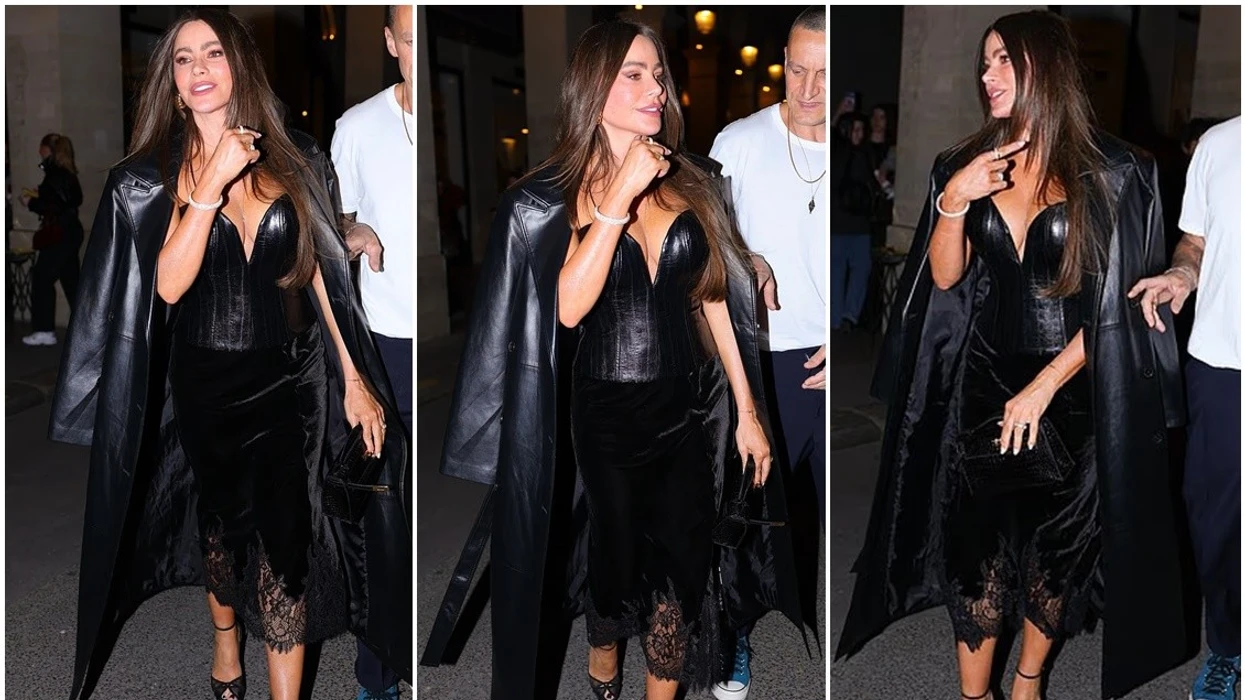 Vergara kombinoi korsetin me një fund të zi me detaje me dantellë në fund, si dhe me këpucë të zeza me gishta të hapur.
