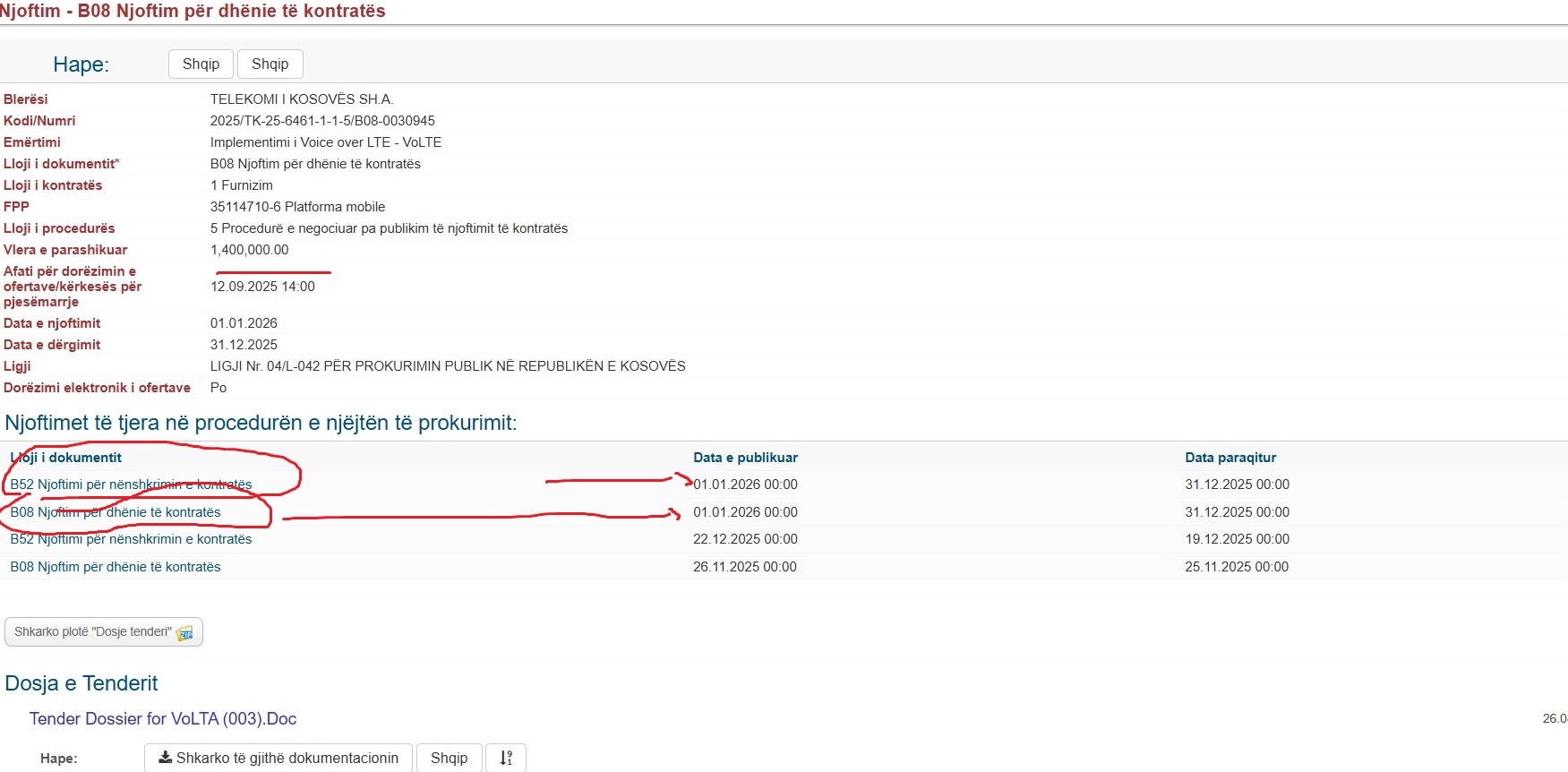 Në ditën kur institucionet zakonisht janë të mbyllura dhe administrata pushon, Telekomi i Kosovës ka publikuar në platformën elektronike njoftimin për dhënie dhe nënshkrim të kontratës, me vlerë 1.4 milionë euro, përmes procedurës së negociuar pa publikim të njoftimit për kontratë.