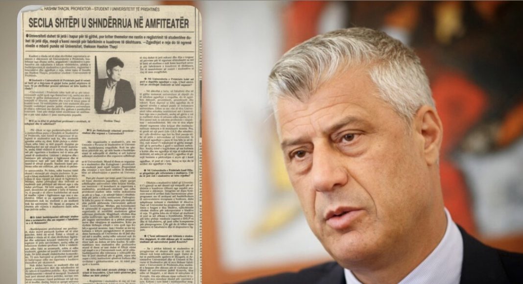 Ish-presidenti Hashim Thaçi ka pasur një intervistë të rrallë, të realizuar më 7 qershor të vitit 1992 nga gazeta “Bujku”. Si lider studentor i Universitetit të Prishtinës “Hasan Prishtina”, Thaçi përshkroi vështirësitë studentore të asaj kohe, shkruan Demokracia.com.