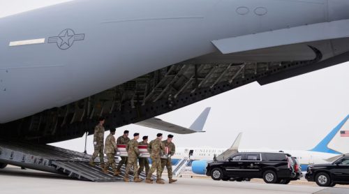 Presidenti Donald Trump, duke folur me gazetarët në Air Force One pas transferimit ceremonial të gjashtë ushtarakëve të vrarë këtë javë në Kuvajt, e pranoi momentin e zymtë, duke thënë: “Është një ditë shumë e rëndë.”