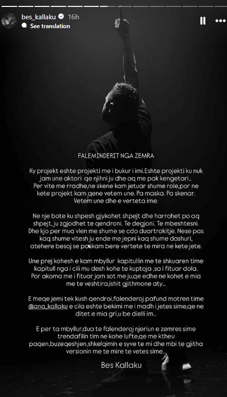 Për vite me radhë, në skenë kam jetuar shumë role, por në këtë projekt kam qenë vetëm unë. Pa maska, pa skenar. Vetëm unë dhe e vërteta ime.