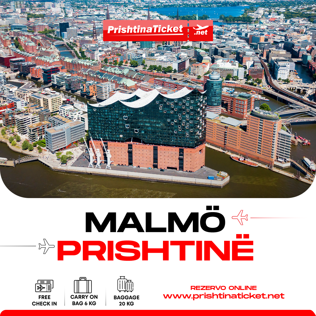 Udhëtoni nga Malmö drejt Prishtinës dhe anasjelltas me PrishtinaTicket dhe përfitoni nga fluturimet direkte çdo të enjte dhe të dielë me çmime speciale. Shijoni një udhëtim të shpejtë, të sigurt dhe të rehatshëm, duke kursyer kohë dhe duke organizuar udhëtimin sipas preferencave tuaja.