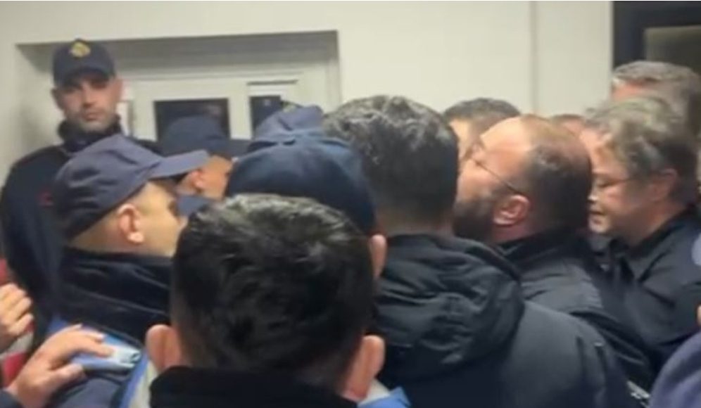 Deputetët e Partisë Demokratike, mes të cilëve edhe Gazment Bardhi, u përplasën me policinë në ambientet e brendshme të komisariatit, ku janë shoqëruar protestuesit.