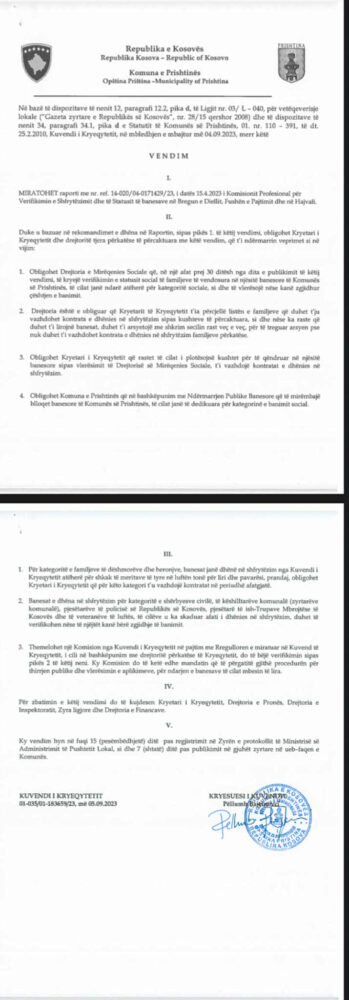 “Ky është mashtrimi i dytë që po përpiqet Rama t’ia servojë opinionit. Vendimi ka të bëjë me miratimin e një raporti të komisionit që i ka trajtuar kontratat për këto banesa. Nëse e shihni vendimin, shkruan qartë: ‘vendim për miratimin e raportit’. Ky komision për verifikimin e këtyre kontratave të banesave që janë në pronësi të komunës është themeluar në prill të vitit 2023, kur Rama i kishte prishur marrëdhëniet me LDK-në dhe kishte formuar këtë komision si shantazh ndaj subjektit të tij për shkak se një pjesë të banesave përfitues janë zyrtarët e LDK-së. Ka edhe drejtorë aktualë në qeverinë e Ramës që janë përfitues të këtyre banesave, përkundër faktit që kanë shtëpi dhe banesa të tyre”, shtoi ai.