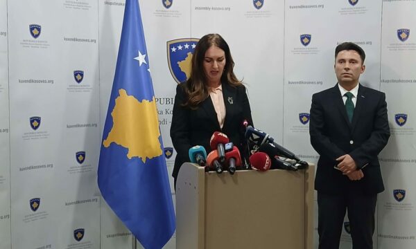 Shefja e deputetëve të VV’së Arbërie Nagavci dhe deputeti Adnan Rrustemi kanë dalë në një konferencë për media pas vendimit të Presidentes Osmani për shpërndarjen e Kuvendit të Kosovës.