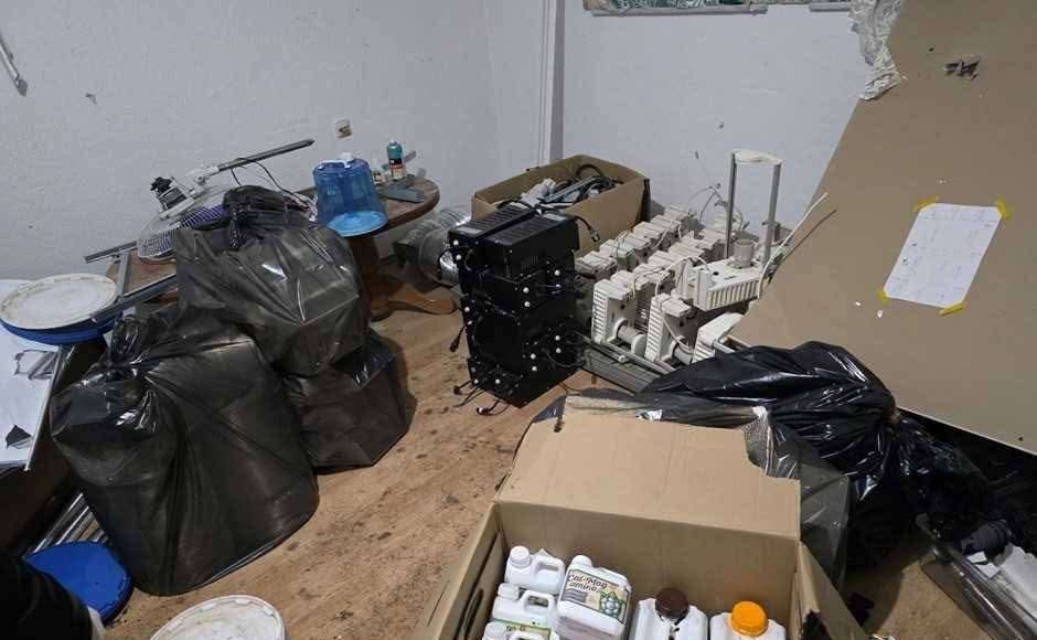 – pajisje të ndryshme të dedikuara për kultivim të bimëve narkotike si (llampa për ndriçim, aparat për ngrohje, klima, trafo të ndryshme të rrymës, gypa ventilimi, pajisje për matje të lagështisë, temperaturës, vegla pune, vazo, preparate kimike dhe pajisje tjera).